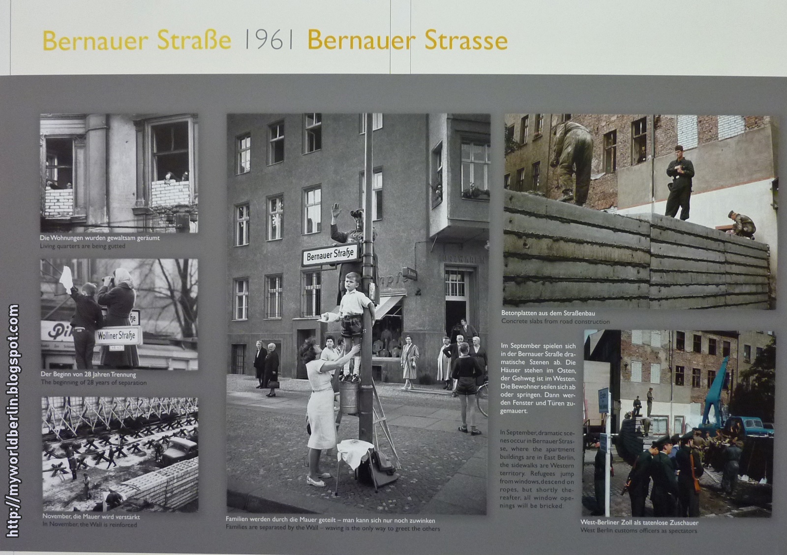 Die mauer ausstellung berlin. 80 privatfotos von berlinern in die zeit des mauerbaus der teilung und des mauerfalls in berlin ein. Die gedenkstätte berliner mauer ist der zentrale erinnerungsort an die deutsche teilung gelegen im zentrum der hauptstadt. Alle die heute etwa 30 jahre oder älter sind werden sich noch erinnern an die tage des mauerfalls in berlin 1989. Am historischen ort in der bernauer straße erstreckt sie sich auf 1 4 km länge über den ehemaligen grenzstreifen.